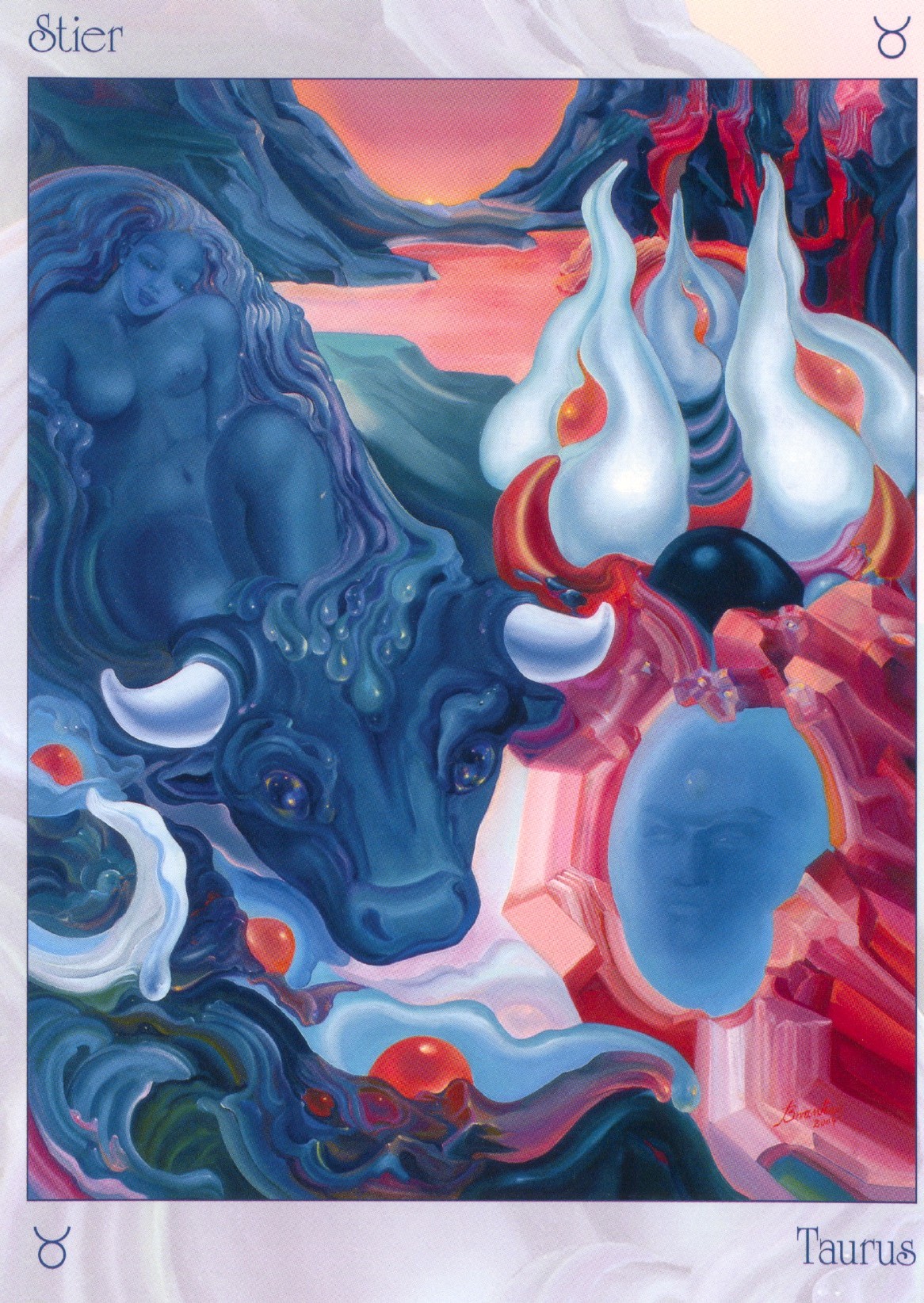 Dubbele kaart 17 x 12,2 cm. incl. envelop Met Engelse en Nederlandse tekst over het zodiak-teken